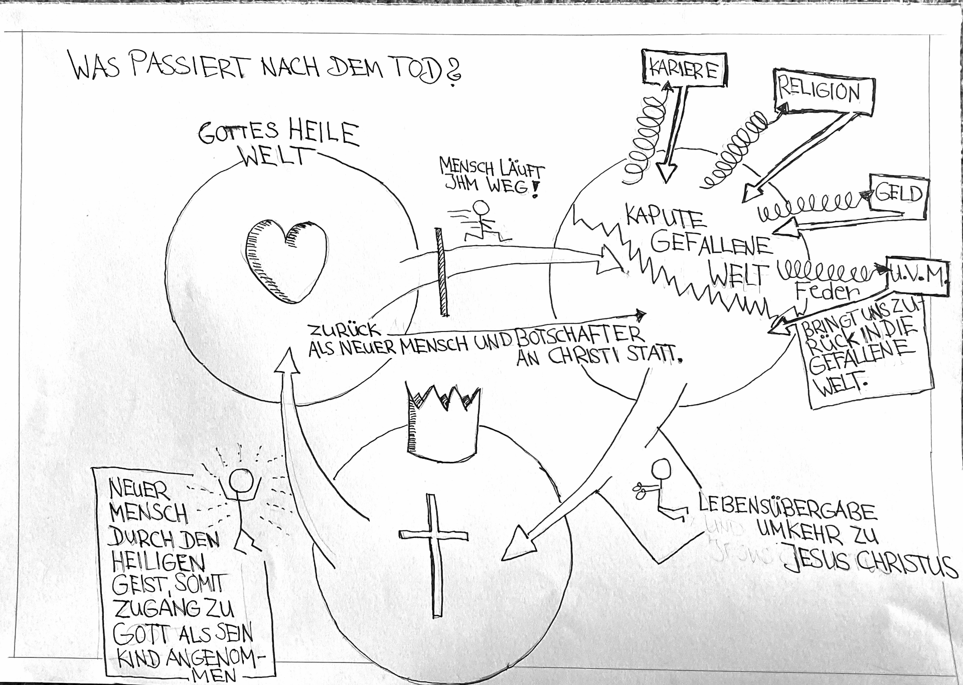 Ich bin jetzt ein begnadeter Sünder, der mit ehrlichem Herzen die Rettung des Heilandes angenommen hat. Hört sich etwas altmodisch an, aber was damals am Kreuz geschah, als der Sohn Gottes für uns Menschen starb, ist immer noch aktuell. (Ich nenne das den A-Plan des Himmels). Der Übergang ins ewige Leben fängt mit der Bekehrung (Umkehr) zu Jesus Christus an. Nun bin ich auf dem Weg in den Himmel. Aber solange ich auf GOTTES Schöpfung, auf seiner Erde bin, lebe ich für seinen A-Plan: Dass Menschen durch JESUS CHRISTUS Zugang zum Ursprung, zum Himmlischen Vater bekommen. Ich will als Zeuge von Jesus Christus über seine Erde gehen.